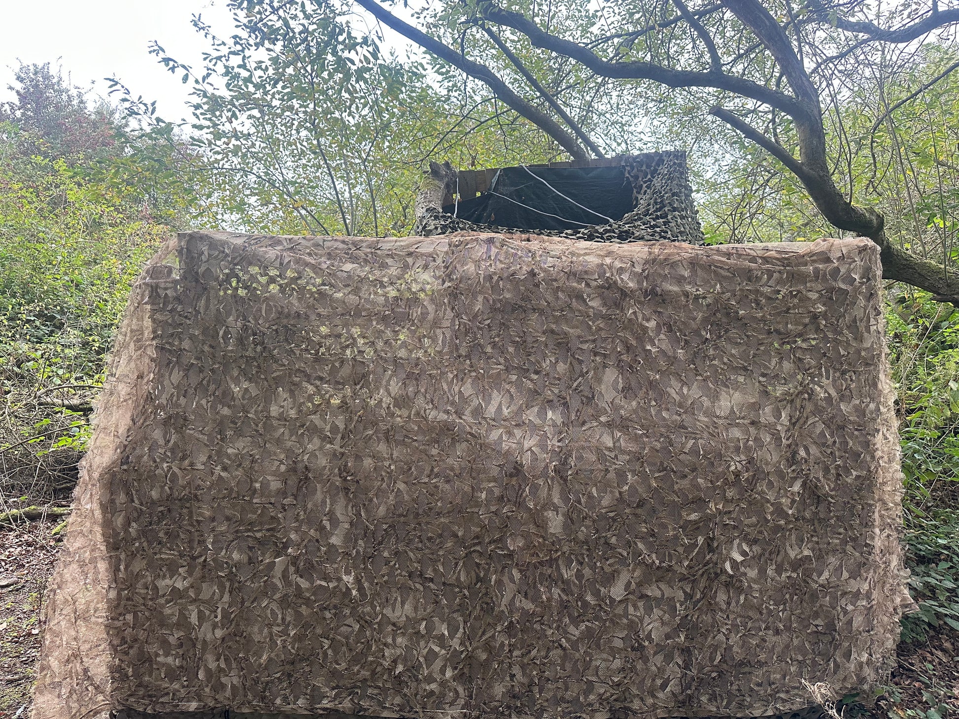 Game remains visible from inside the hide, perfect for pigeon shooting and wildfowling.